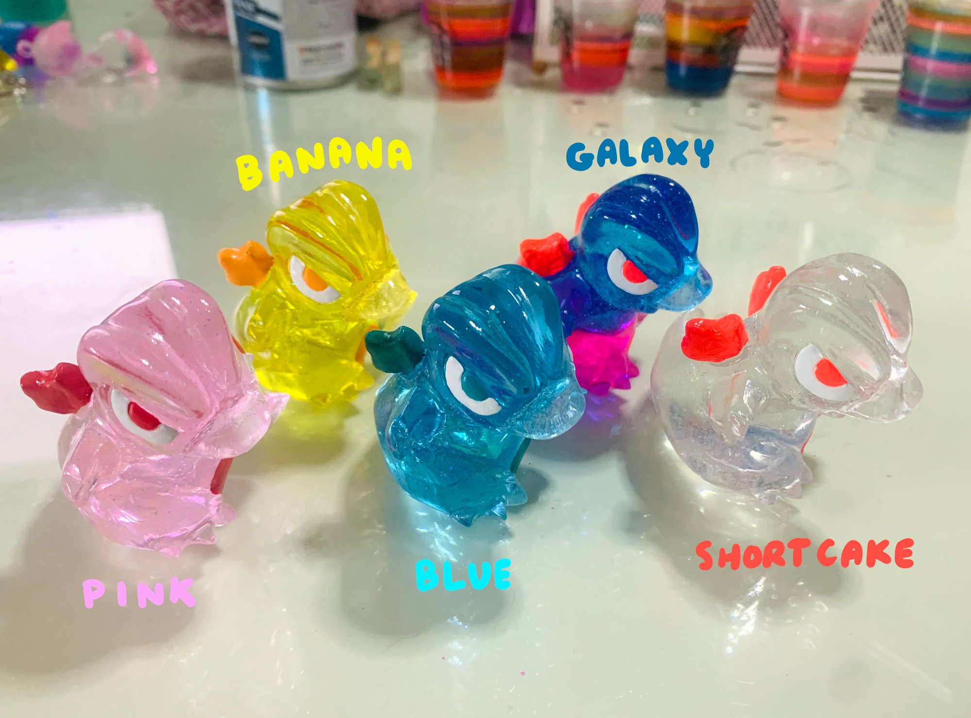 Descending from the great big island up above the LUCK ANGEL appears. The nocturnal LUCK ANGEL can be found at most local casinos and billiard halls feeding off the bad luck of strangers and poker chips. Modern science classifies these as "some sort of lizard guy idk". Choose from 5 glittery translucent flavors!